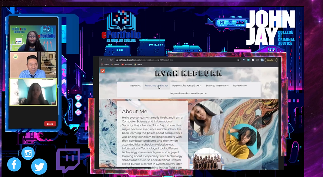 Student Nyah Hepburn presents at the ePortfolio Showcase 2021; Faculty Mentor Kim Liao